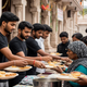 Temple cooks prepare satvik meals with devotion using fresh ghee, wheat, vegetables, and spices. Every dish is cooked prayerfully in sacred kitchens and offered as nourishing prasad to be served to saints and devotees.